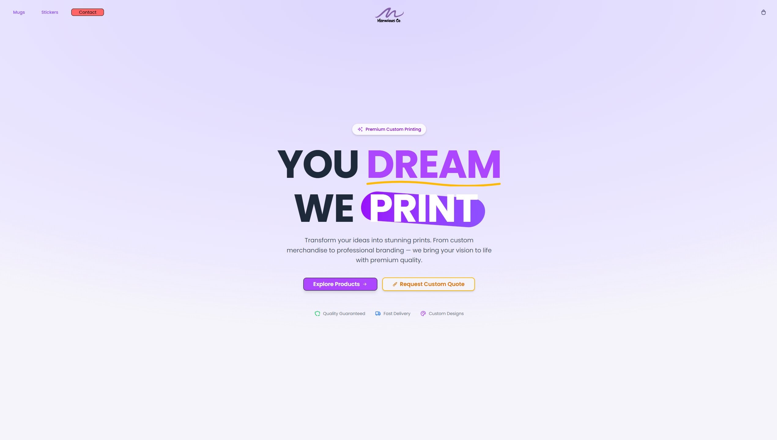 A premium custom printing e-commerce platform that empowers customers to transform their ideas into stunning printed products. The system features advanced custom design upload, real-time product management, and a comprehensive admin dashboard for managing the entire printing business.